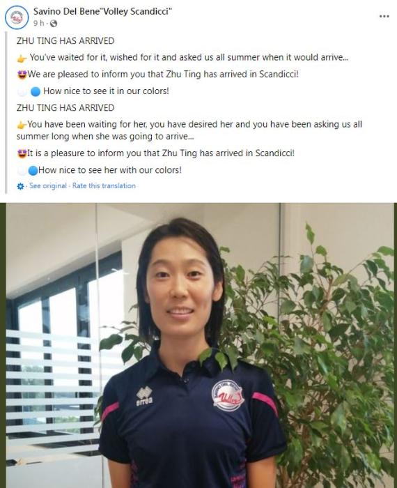 朱婷康复顺利抵达斯坎迪奇俱乐部 准备征战意甲