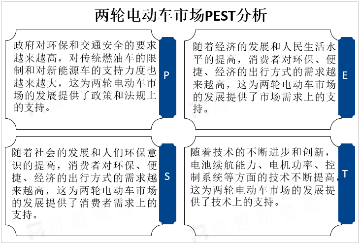 政策支持:政府对环保和交通安全的要求越来越高,对传统燃油车的限制和对新能源车的支持力度也越来越大,这为两轮电动车市场的发展提供了政策和法规上的支持。